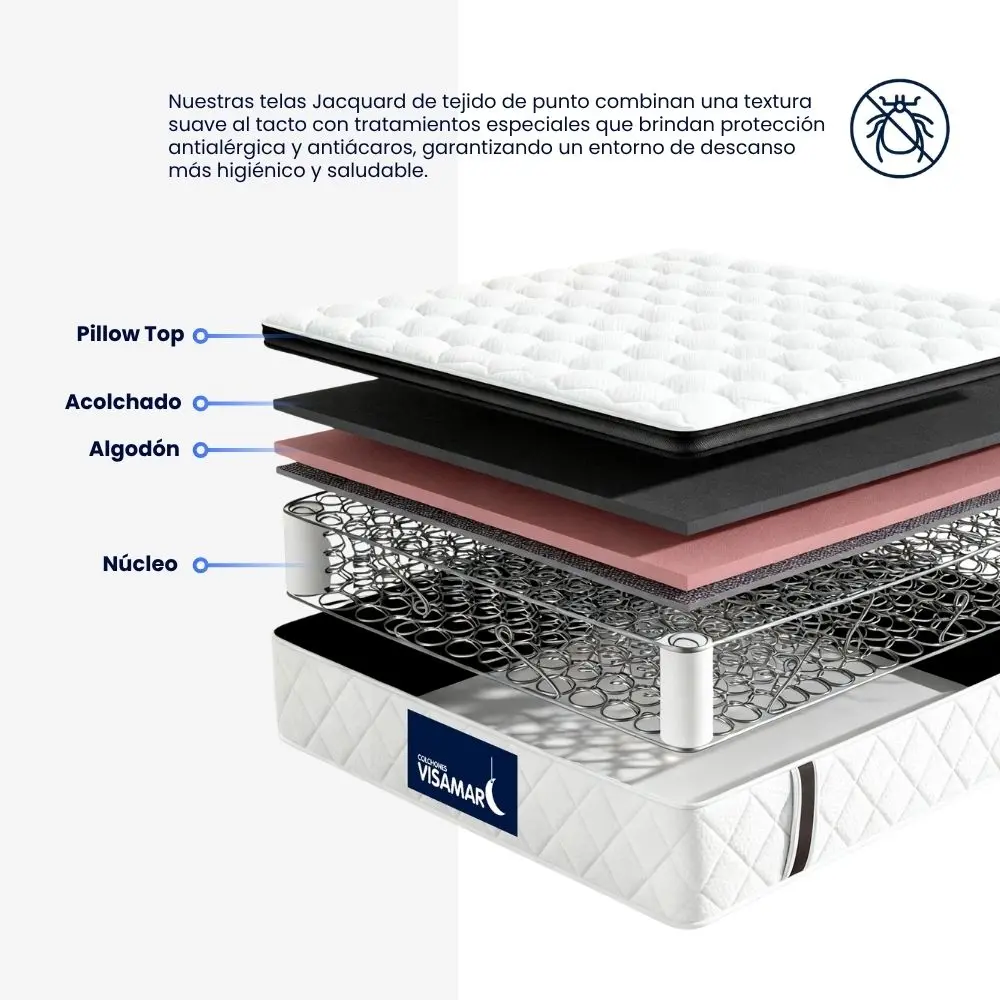 • Pillow Top de 3 cm: aporta suavidad sin reducir firmeza.